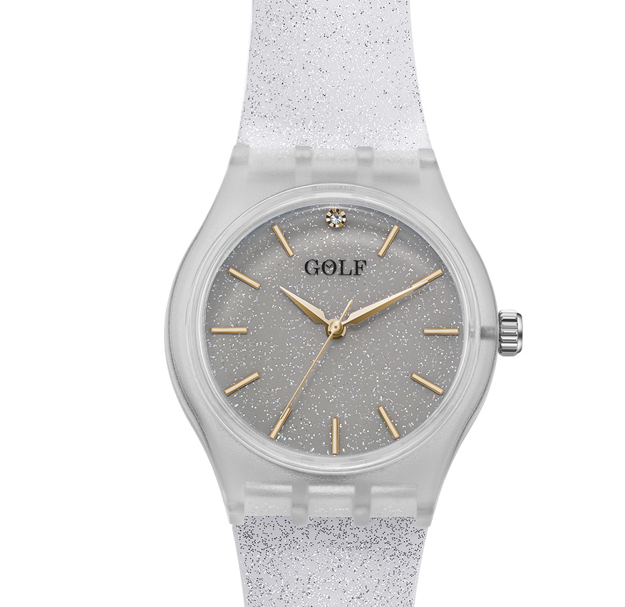 - צבע לוח כסוף מנצנץ, מחוגים וקווים בצבע רוז גולד